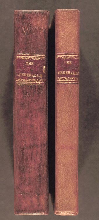The Federalist. 1788. The Federalist: A Collection of Essays, Written in Favour of the New Constitution. . . . In Two Volumes. Two volumes. First edition of a key document in the struggle for acceptance of the new Federal Constitution. Bound in original full sheep (rebacked). Gift of Charles H. Trunnell, 1892.