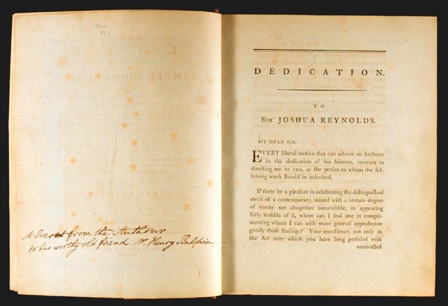 The Life of Samuel Johnson, LL.D. Two volumes. First edition A presentation copy from the author to the printer of the work, inscribed by Boswell on the verso of the title page of the first volume "A Present from the Authour to his worthy old friend Mr. Henry Baldwin." Rebound by Riviere in full maroon straight-grained morocco. Bookplates of Nicholas F. Brady in each volume. Gift of Mrs. Nicholas F. Brady, 1935.
