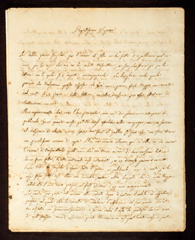 Autograph letter, signed. 18 leaves (35 pages), in Italian. The original draft of Manzoni's celebrated essay on Romanticism in Italy, as sent to his friend Cesare d'Azeglio. The work became widely popular following its unauthorized first printing (in Paris, from a very imperfect copy of this letter) in 1846. Acquired by the Woodstock College Library some time before 1882 and deposited at Georgetown with the archives of the Woodstock Theological Center, 1976.