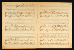 Mephisto Polka. Copyist's manuscript, signed. 18 pages. Apparently the final working draft of the Polka (a companion piece to the more famous "third" Mephisto Waltz published with it), with numerous autograph corrections and a virtuosic "ossia" part invented for the right hand nearly throughout. Signed and inscribed by the composer to one of the most devoted, if least talented, of his students, Fräulein Lina Schmalhausen, on the first page. Gift of Leon Robbin, 1996.