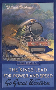 Nor is it surprising that the main visual thrust of the railway poster campaigns during these years was directed towards the anticipated delights of journey's end, and copies of posters were routinely offered to - and eagerly purchased by - the public, some of whom might indeed have to settle more often for an idyllic image of Britain's coasts or mountains in their rooms than for the real thing. This exhibit, however, focuses primarily on posters which celebrate the railways themselves: their personnel, their rolling stock, and, because the amalgamation freed up needed capital for improvements on antiquated infrastructures, the engineering and architectural feats achieved to create new, high-speed lines.