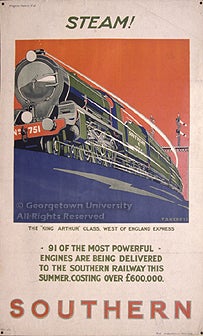 Bibliographical references following individual entries are to reproductions of the posters in either Beverley Cole and Richard Durack, Railway Posters 1923-1947 (Laurence King, 1992) or Tony Hillman and Beverley Cole, South for Sunshine: Southern Railway Publicity and Posters, 1923 to 1947 (Capital Transport, 1999). Viewers may also wish to consult the poster website developed by the National Railway Museum in York, England, which shows a wide selection of railway posters, particularly of the "journey's end" type.