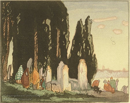 Scutari is a Turkish town on the eastern shore of the Straits of Bosphorus, opposite Istanbul. The town is best known for its large and beautiful cemetery, which extends across three miles of undulating plain. Mokuchu Yoshijuro Urushibara lived in Britain and France from 1907 to 1934, teaching and collaborating with a number of artists.