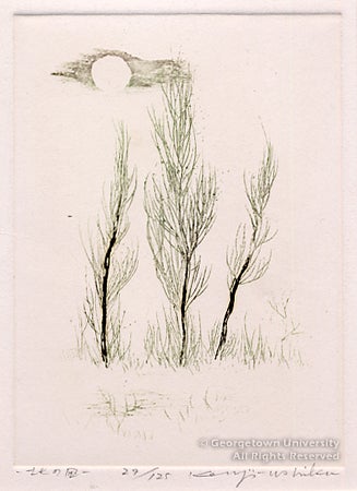 For Kenji Ushiku, who is known usually for his large, bold, abstract etchings, these smaller and more delicate naturalistic renderings are regarded as an "alternate subject" (Frances Blakemore, Who's Who in Modern Japanese Prints, 1975).