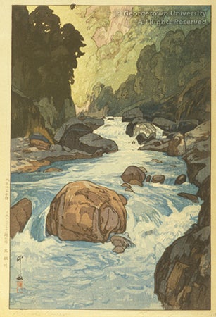 Hiroshi Yoshida was one of the artists who revived traditional Japanese printmaking methods in the twentieth century. His son, Toshi Yoshida, also worked as a printmaker, in both traditional and abstract styles, the latter of which is represented in this exhibit.
