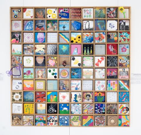 The Disability Cultural Center, the Department of Art and Art History, and the Georgetown University Library are proud to launch an art exhibit showcasing student artwork that celebrates disability culture and community at Georgetown. Working in various media, from painting and poetry to animation and mixed media, the students featured in this exhibit demonstrate the vibrancy and multifaceted perspectives of the disability community on campus. Works originally created for ACDC: Art Celebrating Disability Culture are displayed, alongside the Lego ramp constructed in Red Square as part of DCC’s Ramping Up Access event. Together, the works invite the audience to consider the ways they can contribute to a culture of access.