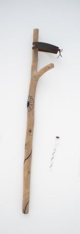 A driving force for the project was my desire to undertake the physical process. The carving process included identifying a suitable fallen branch while on a hike with my dogs, sawing the branch to size using my existing forearm crutch as a guide, stripping the initial layer of bark, whittling the wood down to the right thickness, sanding until smooth, burning the design of a sunflower (the symbol of invisible disabilities) and the names of people who had supported me through this process into the wood, staining and sealing the entire crutch, and finally crafting an adjustable leather band to act as the forearm cuff. I was steadfast from the beginning that I wanted to complete all of the carving by hand (not utilizing power tools) because I identified taking the time to sit with the project and feeling as though I was shaping the wood with my own hands as an essential component of the grieving process. In this way, the process was far more important to me than the product. While I was working, I chose not to listen to music. I wanted to sit with the project and whatever emotions—both positive and negative—that arose during the process. In this way, the project was an experience of mindfulness: moving between imagining each slice of wood I peeled off as a part of my life I have lost due to my disability to imagining that with each slice I was making myself lighter and moving closer to the experience of weightlessness I feel when I have just come out of a flare-up and can walk easily without a mobility aid—an experience that is only possible due to my use of aids during my flares. As such, this project and the process of its creation serve as embodiments of disability grief and my personal journey with disability and mobility aids.