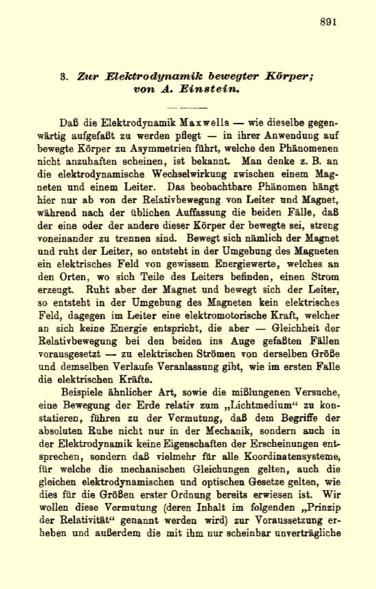 - Einstein, Albert. (1905). "Zur Elektrodynamik bewegter Körper" [On the Electrodynamics of Moving Bodies]. Annalen der Physik. 17 (10): 891–921.