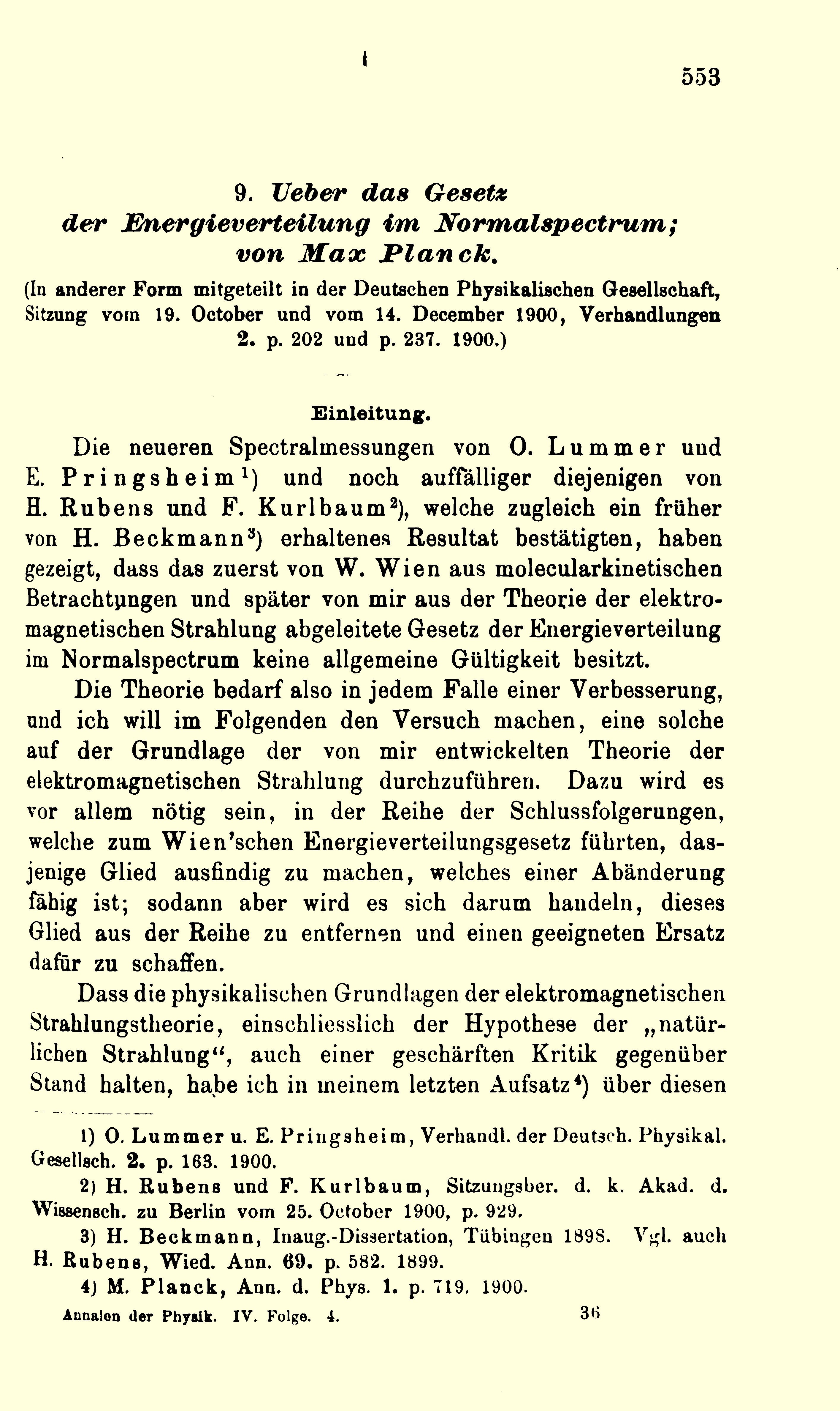 - Planck, M. (1901). Über das Gesetz der Energieverteilung im Normalspektrum. Annalen der Physik, 309(3), 553–563.