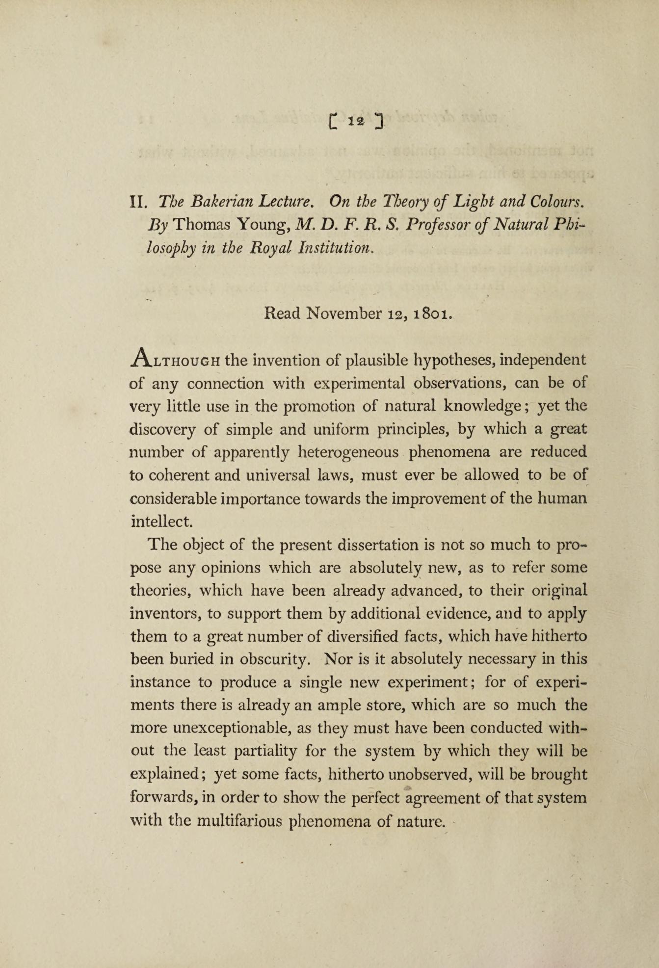 Lecture delivered to the Royal Society of London in 1801.