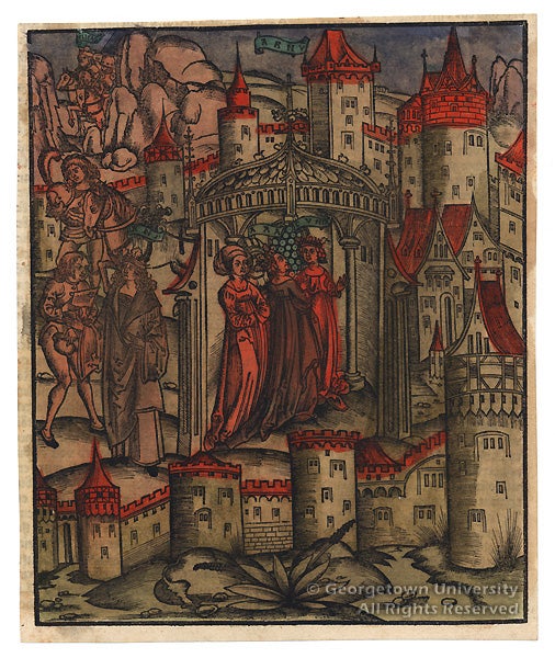 This leaf from the Chronicarum’s German edition is the oldest print in Georgetown’s art collection.