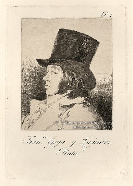 Goya depicted himself in the frontispiece to the series, shown here, dressed in the latest fashion and exuding both confidence and disdain. Even before turning to the first plate, the artist has signaled with his own portrait a visual warning of what is to come.