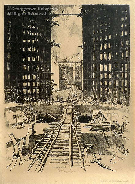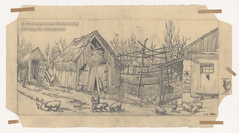 Father Haller arranged with Albee collectors Julius and Marjorie Cohn to purchase over time a total of one hundred forty-eight works, including preparatory drawings and trial proofs. A retrospective of her career at the Women’s Museum in 1999 drew heavily from Georgetown’s collection. An exhibition at Georgetown in 2005 was guest curated by Christina Weyl, a senior in the American Studies department. From her thesis, Ms. Weyl went on to publish a related article on Grace Albee in the Print Quarterly (XXIV, No. 2, 2007).