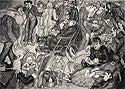This print depicting dancers and drummers in a West Indian temple represents the beginning of Georgetown’s fine prints collection: it was the very first print Father Haller purchased, from the Bethesda Art Gallery, in 1976.
