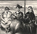 Beginning in the 1940s, Greenwood worked for and exhibited her art with the Associated American Artists of New York. The AAA commissioned original graphic art from such great American masters as Grant Wood, Thomas Hart Benton, Reginald Marsh and many others. From 1950 until her death in 1970, original lithography became as important in Greenwood’s art as easel painting and murals.