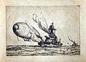 This etching likely depicts the arrival of the airship PL 18/Parseval No. 4, purchased from Germany in 1912 and delivered to the English Navy in 1913.