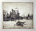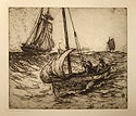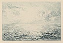 Dawson, who hailed from Stamford in Lincolnshire, trained as an architect but established himself as a painter of marine views in the bohemian London suburb of Chelsea, where he became friends with Whistler, Sir Frank Brangwyn, and other late Victorian artists. Following the demise of the Dawsons’ metal workshop in 1909, Nelson Dawson devoted himself primarily to creating etched marine views, as represented in this exhibition. They reveal his profound connection with the sea and something of Dawson’s hero, the master of British marine painting J.M.W. Turner (1775 – 1851), whose popular series of printed views, the Liber Studiorum, was re-published several times in the nineteenth century.