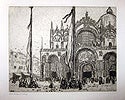During the years prior to World War I, Dawson became more involved with etching and made several trips abroad. Perhaps inspired by his famous Chelsea friend and neighbor, James McNeill Whistler, Dawson lived in Venice from 1914-15. The influence of Whistler’s two suites of Venetian etchings, completed in 1880 and 1883 and widely reproduced in art magazines in subsequent years, is evident in these scenes by Dawson, especially in Venetian Hay Boat. In each of his evocative etchings of the Serene Republic, one can see Dawson’s skill as an architectural draftsman combined with the rapid, sketchy technique popularized by Whistler.