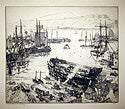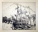 This etching commemorates an era already past when Dawson visited and created there; as new steel-hulled ships became available, shipbuilding in Scarborough declined and eventually completely ceased in 1862.
