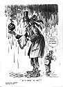 The 21 original cartoons in this exhibit were gathered by Hopkins during the years 1936 to 1940, the period when he first came into Roosevelt’s government as head of the WPA, became Secretary of Commerce, dealt with the 1940 census, and had a very brief fling with ideas about the presidency itself. But by Bob Wagner’s standard very few, if any, of these cartoons could be classed as “dope.” Hopkins takes his chair at Commerce and sits on something very sharp; he blows hot air at a boulder that obstructs the path of his car; he’s portrayed dressed as a Victorian undertaker; with Harold Ickes he’s seen in drag in a kitchen warring over Ickes’s PWA “dough” to Roosevelt’s somewhat amused annoyance; his programs are portrayed as merely a scam to buy votes. And the puncturing of his presidential aspirations receives the approval of the universe.