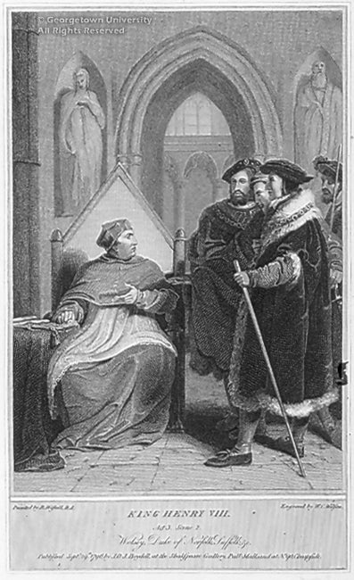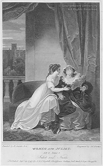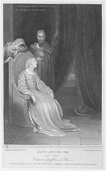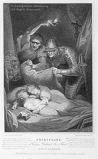 HISTORIES AND TRAGEDIES FROM THE BOYDELL SHAKESPEARE FOLIO presents twenty-five engravings, dating from 1791 to 1803, that were adapted from paintings shown at the Shakespeare Gallery in London in the late eighteenth century. John Boydell (1719 - 1804) was a noted engraver, publisher, print-seller, and even Lord Mayor of London, who established the Shakespeare Gallery and sold to subscribers engravings of the paintings shown there. His nephew, Josiah Boydell, published the collected engravings after John Boydell's death. The bound volume of Boydell's Graphic illustrations of the dramatic works of Shakspeare included in this exhibit was a gift in 1940 of Elisha Riggs, Jr., whose father was the first great benefactor of Georgetown University's Riggs Library, in 1890. The engravings in the exhibition, which may once have been bound together in a similar volume, came to the Library as a gift of James E. Sale in 1996.