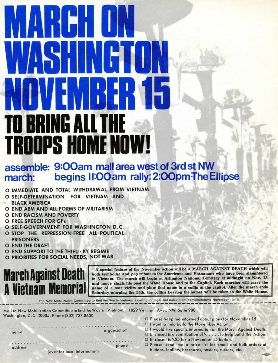 "The National Moratorium to end the Vietnam war will open its first peace offensive tomorrow across the nation."