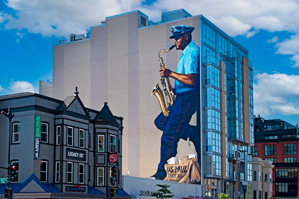 Buck Hill, the “Wailin’ Mailman,” memorialized on 70-foot mural on U Street, 2018