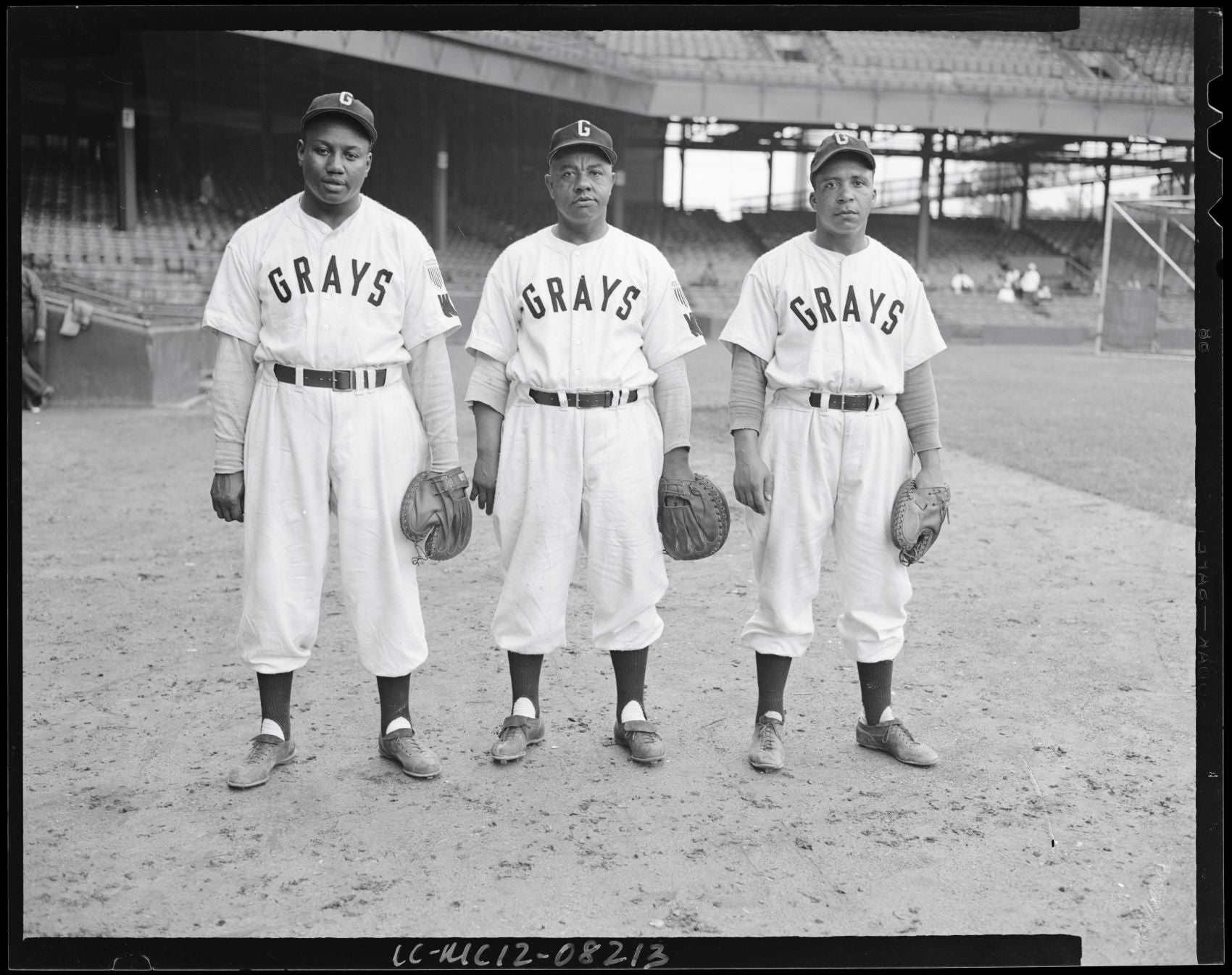 One of the best teams in the Negro Leagues, the Homestead Grays split their home games between Forbes Field in Pittsburgh and Griffith Stadium in Washington, D.C. This photograph of Josh Gibson (1911-1947), Ted “Double Duty” Radcliff (1902-2005), and Euthumn "Eudie" Napier (1913-1983) was taken only three months before Jackie Robinson debuted as the first Black player in the major leagues. Three-time Negro League World Champions in 1943, 1944, and 1948, the Homestead Grays often attracted larger crowds than the major league Washington Senators. Their owner, Clark Griffith, vehemently opposed major league integration because of his racism and his unwillingness to give up the profits garnered from the Homestead Grays’ games. The Washington Senators did not have an African American player until 1957.