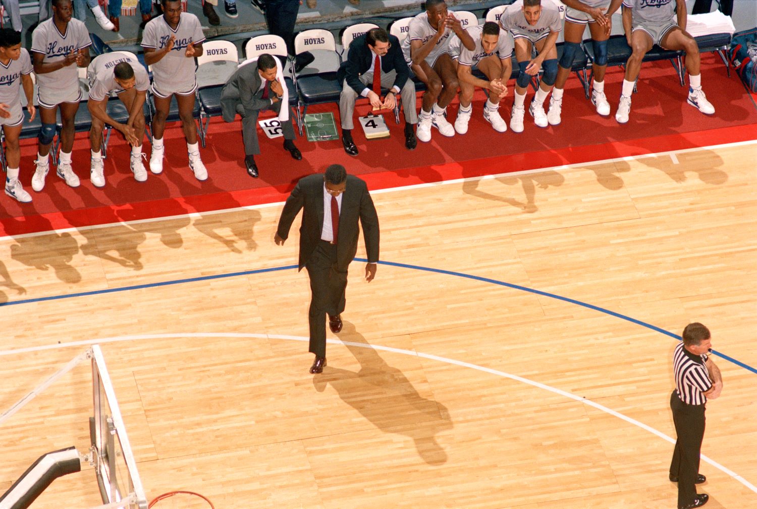 John Thompson, Jr., on sideline with trademark white towel, 1993
