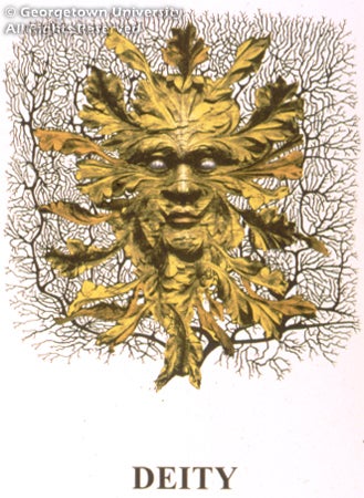 Among the work of the Cuzco School included in this exhibit are a canvas Lamentation from the seventeenth or eighteenth centuries, that could be rolled into a scroll for easier transport by traveling priests; from the same century, a Virgin of Sorrows; from a century later, an interesting painting of Pope Gregory I (Gregory the Great); and in reproduction, one of the Georgetown University Art Collection's important paintings, a large Our Lady of Montserrat, the famous Spanish scene depicted within Andean-type mountains and with South American people.
