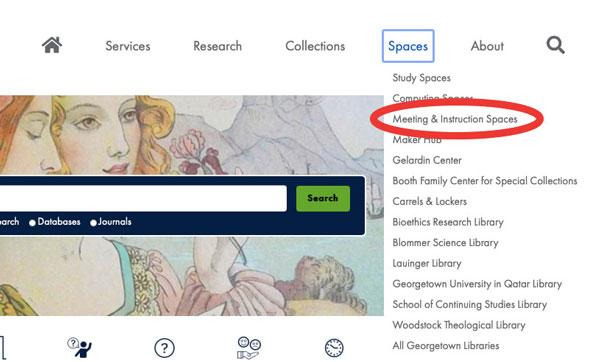 Faculty and instructors can reserve library spaces, including the Murray Room, Multimedia CoLaboratory, and Idea Lab, under the “Spaces” tab in the main navigation menu.