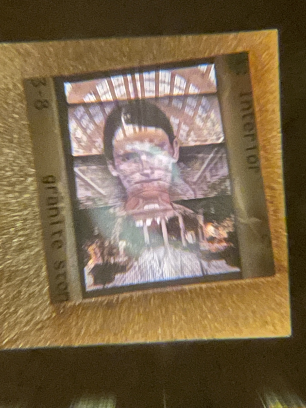 This project is a large viewfinder with slide images of monuments overlaid with images of historical injustices to remind people what the success America has is built off of.