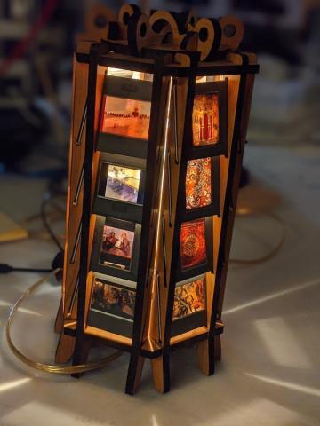 The Maker Hub received a significant donation of old fashioned projector slides from the Art History department last year. Since then, we have been coming up with ways to incorporate them into various projects. This is one of them - based off Don Undeen's original idea of slide lamps, I modified the design to be used with cherry wood instead of MDF.