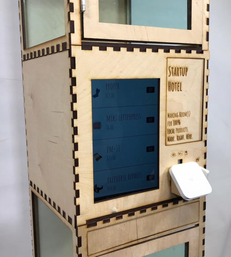 The startup hotel makes local goods more accessible through automated vending pods. Our vending pods sell farmers market quality food in corporate office kitchens and host unique products created by a community in coffeeshops and main street retail. We have 2 pods running in Saxby's and Midnight Mug as well as 3 in development for UPS stores in Northern Virginia.